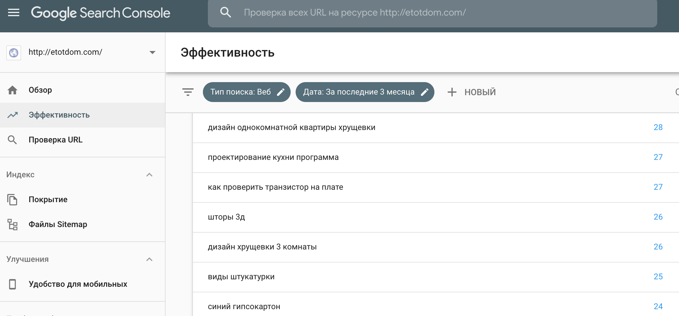 Статистика запитів за показами і переходами також надається в Google Search Console. Тут ви знайдете, за якими фразами вже є видимість у вашого сайту.